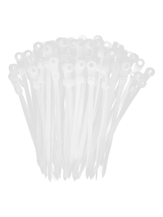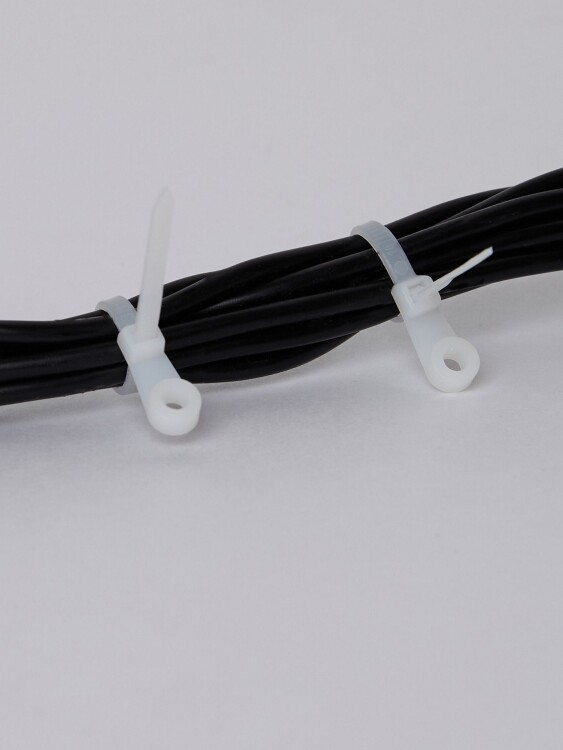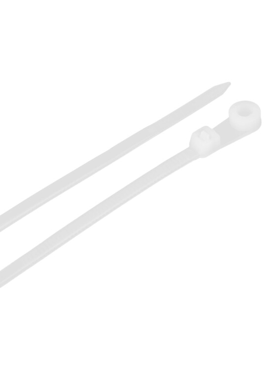 Хомут предназначен для крепления, бандажирования проводов и кабелей. Конец стяжки имеет отверстие для крепежа хомута к рабочей поверхности при помощи саморезов