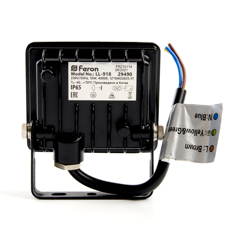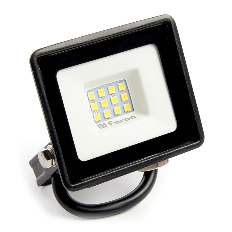 Прожектор светодиодный многоматричный с монтажным креплением на кронштейн, (ДО) FERON LL-918, 10W, 4000К (белый), 230V/50Гц, 800Lm, IP65, угол рассеивания 120°,*SMD2835, раб.t -40°C - +40°C, цвет чёрный, корпус алюминий литой под давлением + стекло, 81*21*76 мм