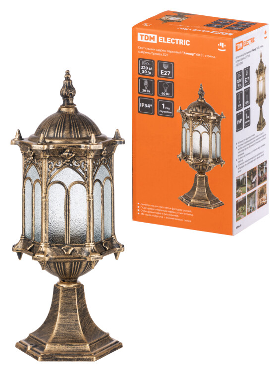 TDM Светильник садово-парковый "Ампир" 60 Вт, стойка шагрень/бронза Е27