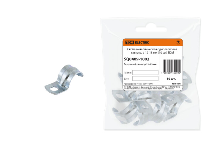 TDM Скоба металлическая однолапковая с внутр. d 12-13 мм (10 шт).