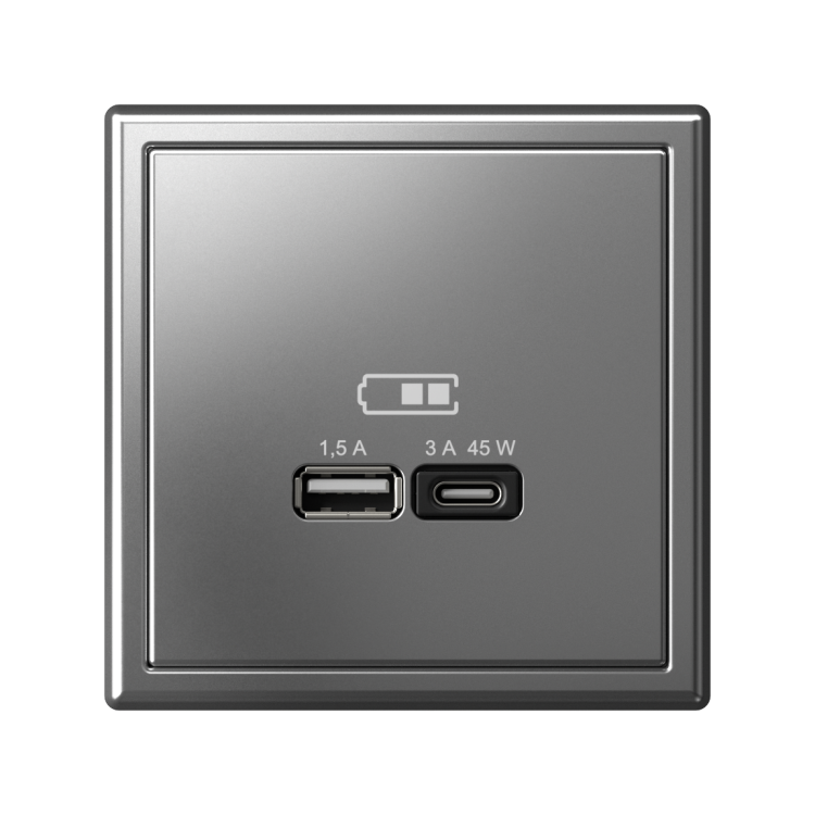 Розетка Systeme Electric серии ArtGallery в цвете сталь двойная USB с разъемами типа A+C высокоскоростная.