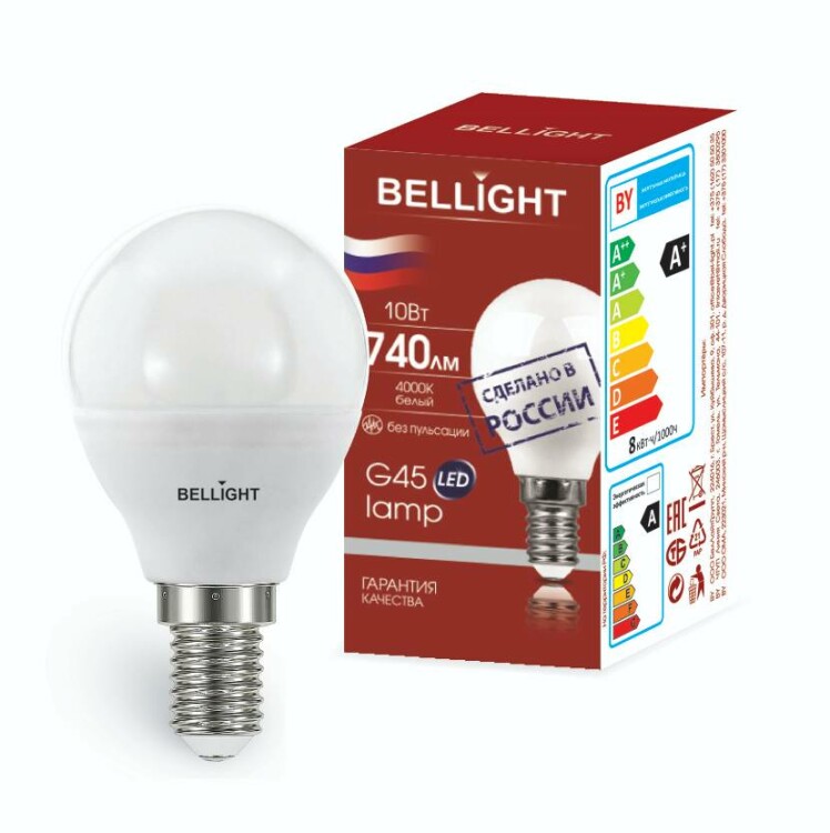BELLIGHT Лампа светодиодная LED G45 10W E14 4000К РФ 1/100