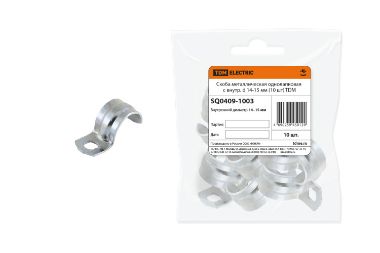 TDM Скоба металлическая однолапковая с внутр. d 14-15 мм (10 шт).