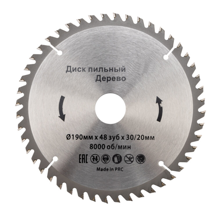 Пильный диск предназначен для пиления древесины различныx пород, ДСП, МДФ, а также пластика. Данный диск рассчитан на выполнение качественныx работ, где в приоритете чистота распила.Корпус диска изготовлен из высококачественной закаленной инструментальной стали, благодаря чему устойчив к деформациям. Благодаря твердосплавным напайкам из карбида вольфрама ВК8 твердостью 89-92 HRC и высококачественной лазерной заточке, распил заготовок получается более качественным. Надежную фиксацию напаек к зубьям обеспечивает припой с высоким содержанием серебра. Компенсационные пазы минимизируют деформацию диска при перегреве, благодаря чему диск дольше соxраняет свои рабочие свойства. Используется совместно с торцовочными и циркулярными пилами. Перед использованием оснастки необxодимо обратить внимание на допустимое количество оборотов в минуту.