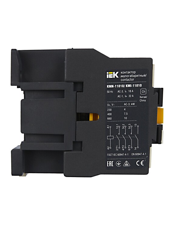 Малогабаритные контакторы переменного тока общепромышленного применения КМИ на ток нагрузки от 9 до 95 А предназначены для пуска, остановки и реверсирования асинхронных электродвигателей с короткозамкнутым ротором на напряжение до 660 В (категория применения АС-3), а также для дистанционного управления цепями освещения, нагревательными цепями и различными малоиндуктивными нагрузками (категория применения АС-1). Все исполнения на ток нагрузки до 40 А имеют одну группу замыкающих или размыкающих дополнительных контактов. Исполнения на ток нагрузки свыше 40 А - две группы (замыкающую и размыкающую).