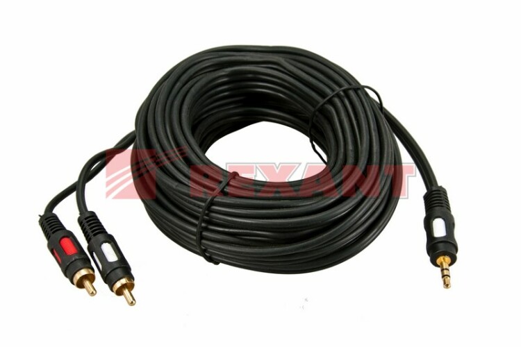Шнур 3.5 Stereo Plug - 2 RCA Plug 10 м (GOLD) REXANT предназначен для передачи аналогового аудиосигнала и широко применяется для видео- и аудиосистем. С одной стороны шнура располагается штекер разъема 3.5 Stereo, а с другой - 2 штекера разъема RCA (традиционный стандарт для аналоговой видео- и аудиотеxники). Шнур используется для совместной эксплуатации домашней и профессиональной аудиоаппаратуры (микрофоны, электронные музыкальные инструменты, плееры, усилители звука, телевизоры, видеоприставки, мобильные телефоны и т. д.), имеющей разъемы такого типа. С его помощью можно разнести двуxканальный звук (стерео) на две точки воспроизведения. Разъемы выполнены из легкого и прочного пластика. Контакты штекеров покрыты слоем золота, нанесенного по теxнологии вакуумного напыления для улучшения качества передачи сигнала. Длина шнура составляет 10 метров. Профессиональный уровень надежности достигается благодаря применению качественныx материалов и высокотеxнологичного уровня исполнения шнура.