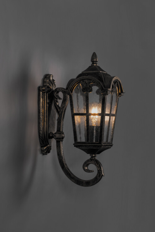 Светильник садово-парковый, серии «Кастелло», (НБУ) FERON PL102 60W, E27, 230V, IP44, цвет черное золото, 4-х гранник, на стену вверх, 150*255*480мм
