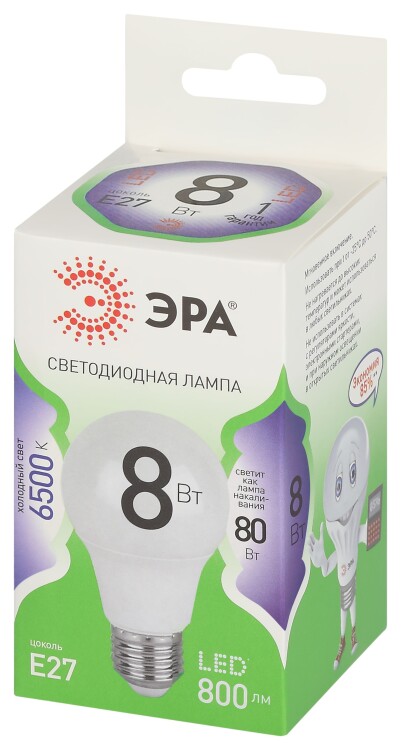 Светодиодная лампа ЭРА LED A60-8W-865-E27 GL серии Green Line — эффективное решение для основного освещения. Лампочка Е27 мощностью 8 Вт излучает холодный белый свет (6500K) без мерцания. Классическая колба A60 (груша) и стандартный цоколь E27 делают её совместимой с люстрами, бра, настольными и напольными светильниками. Высота лампы: 108 мм. Светодиоды потребляют меньше электроэнергии и служат значительно дольше традиционных ламп накаливания: до 30 000 часов. Работает от сети 220 В, эквивалентна 80 Вт лампе накаливания. Светодиодные лампы ЭРА подходят для жилых и коммерческих помещений и обеспечивают стабильное освещение.