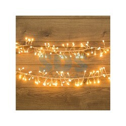 Гирлянда «Мишура» длиной 3 метра состоит из кабеля в прозрачной ПВХ-оболочке и 288 экономичных диодов, излучающих белый свет теплого оттенка. Объемное украшение с общим диаметром 9 см имитирует пушистую елочную мишуру, мерцающую золотистыми огнями. Гирлянда подходит не только для украшения новогодней ели, но и для создания акцентной интерьерной подсветки. Диоды управляются контроллером, меняющим сценарии свечения — всего 8 разных режимов. Степень защиты IP20 предполагает домашнее использование. Для подключения в сеть 230 В предусмотрен трехметровый питающий шнур.