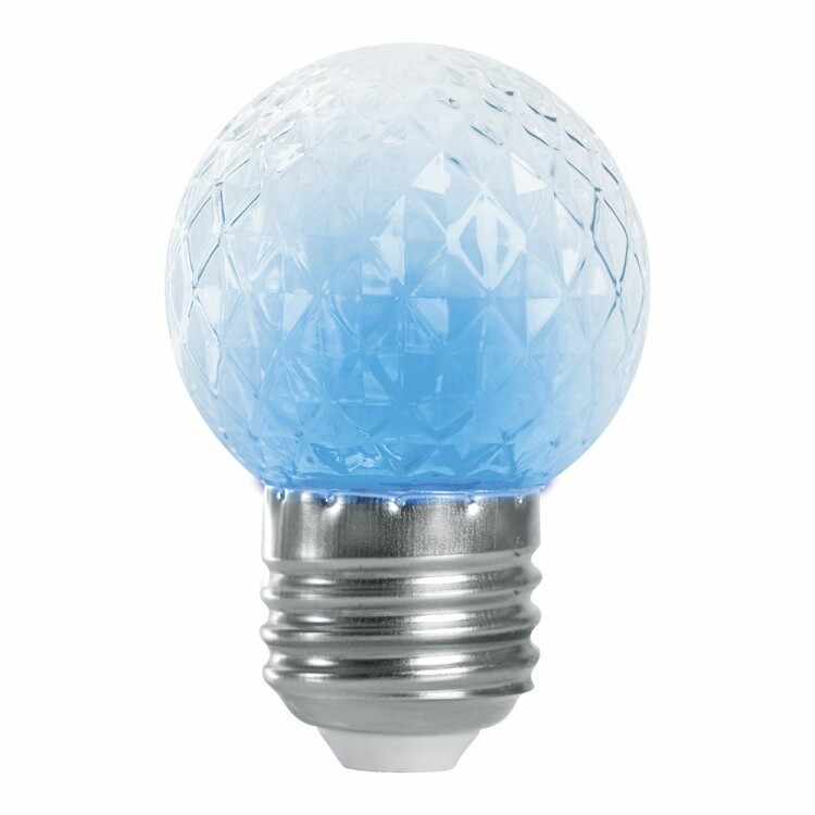 Лампа светодиодная FERON LB-377, G45 (шар), 1W 230V E27 (синий), рассеиватель прозрачный белый, угол рассеивания 270°, 70*45мм