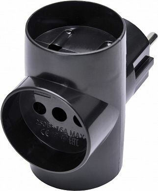 Сетевой разветвитель STEKKER ADP10-15-20 без заземления, количество присоединяемых устройств 3, номинальное напряжение 250В, номинальный ток 10А, материал ABS, цвет черный, IP20