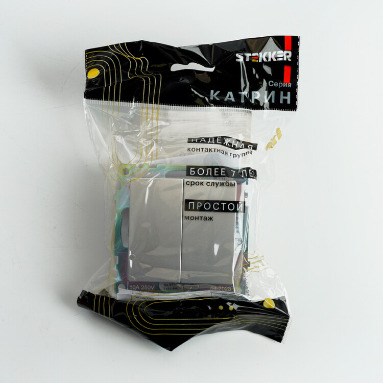 Выключатель двухклавишный STEKKER GLS10-7107-03, серия Катрин тип установки - скрытый, размер изделия 55*55*35мм., цвет серебро, материал изделия поликарбонат, латунь. Номинальное напряжение 250 , номинальный ток 10А, IP20