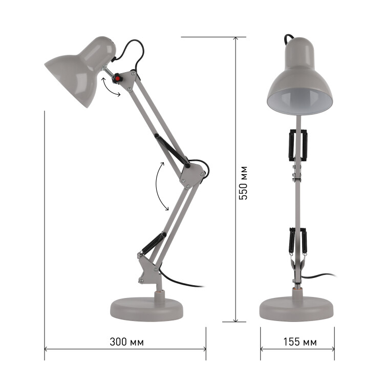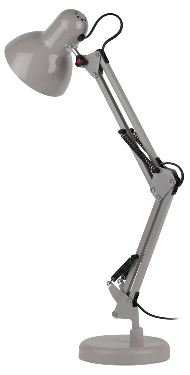 Настольный светильник ЭРА N-214-E27-40W-GY классического дизайна может использоваться с разными источниками света - лампо й накаливания, компактной люминесцентной лампой (КЛЛ) или светодиодной (LED) лампой. Выключатель на проводе. Устойчивое основание. Высота плафона регулируется двухсекционной сгибающейся стойкой, направление света - поворотом и наклоном плафона в любом направлении.