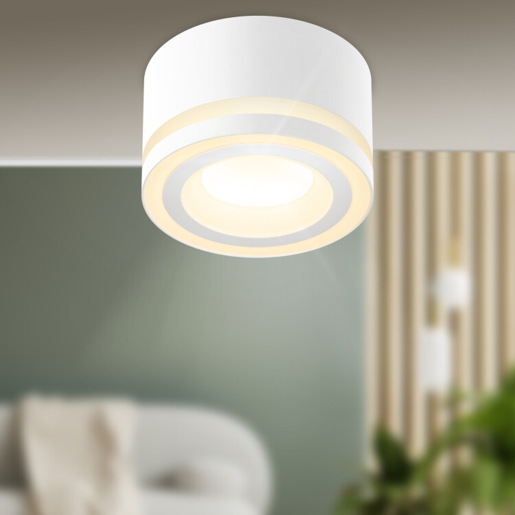 Накладной светильник OL51 WH делает помещение зрительно более стильным и интересным. Используя по периметру несколько однотипных осветительных устройств, можно сформировать интеренсые световые геометрические рисунки. Цоколь для источника света GX53, напряжение питания ~230В 50/60Гц, материал металл, пластик, цвет светильника белый, размер D83x50мм, максимальная мощность лампы 15Вт, степень защиты IP20