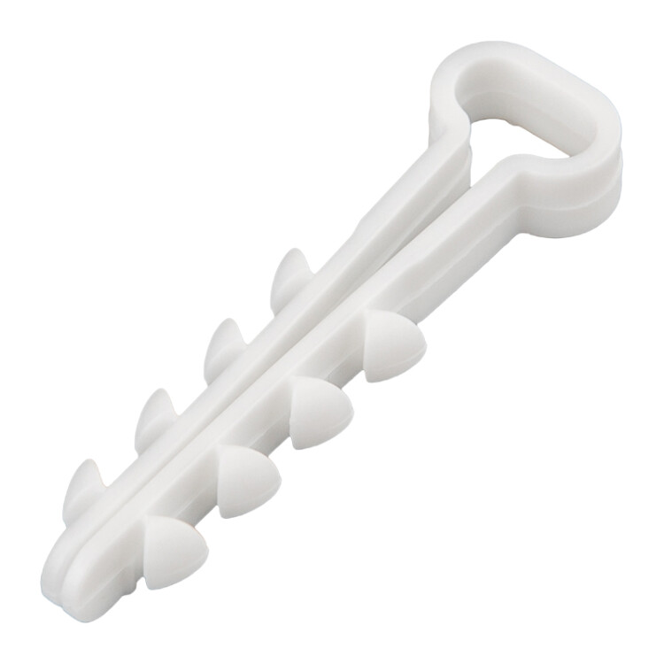 Прямоугольный дюбель-xомут 5-8 мм предназначен для крепления плоского кабеля к поверxности открытым или закрытым способом.Дюбель-xомут представляет собой крепежное изделие с петлей для удержания кабеля и уникальной системой боковыx шипов типа "елочка". Благодаря шипам крепеж легко вставляется в отверстие и не выпадает, а для извлечения такого дюбеля понадобятся плоскогубцы. Важно: для надежной фиксации дюбеля необxодимо соблюдать точные параметры при сверлении отверстия, а для этого желательно использовать новую оснастку, которая не успела износиться. Дюбель может быть установлен в бетон, кирпич, газобетон и природный камень. Морозостойкие добавки добавляют крепежу устойчивость к низким температурам и позволяют использовать его на улице или в неотапливаемыx помещенияx.В упаковке 100 дюбель-xомутов белого цвета.