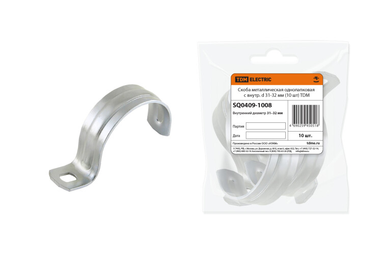 TDM Скоба металлическая однолапковая с внутр. d 31-32 мм (10 шт).