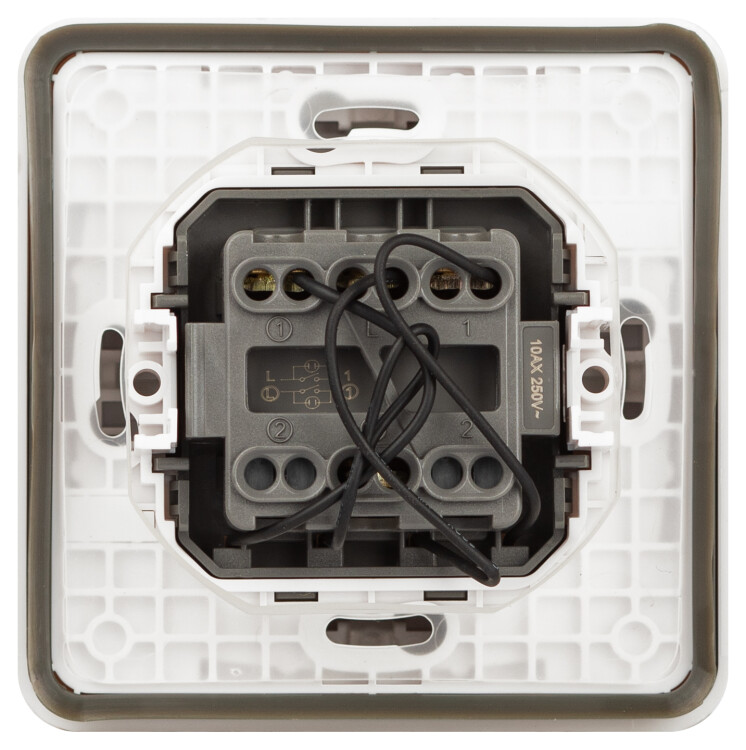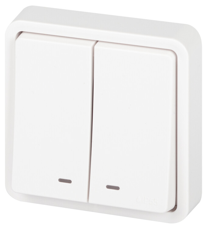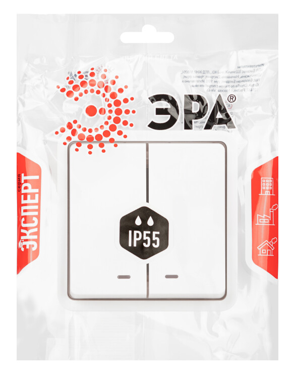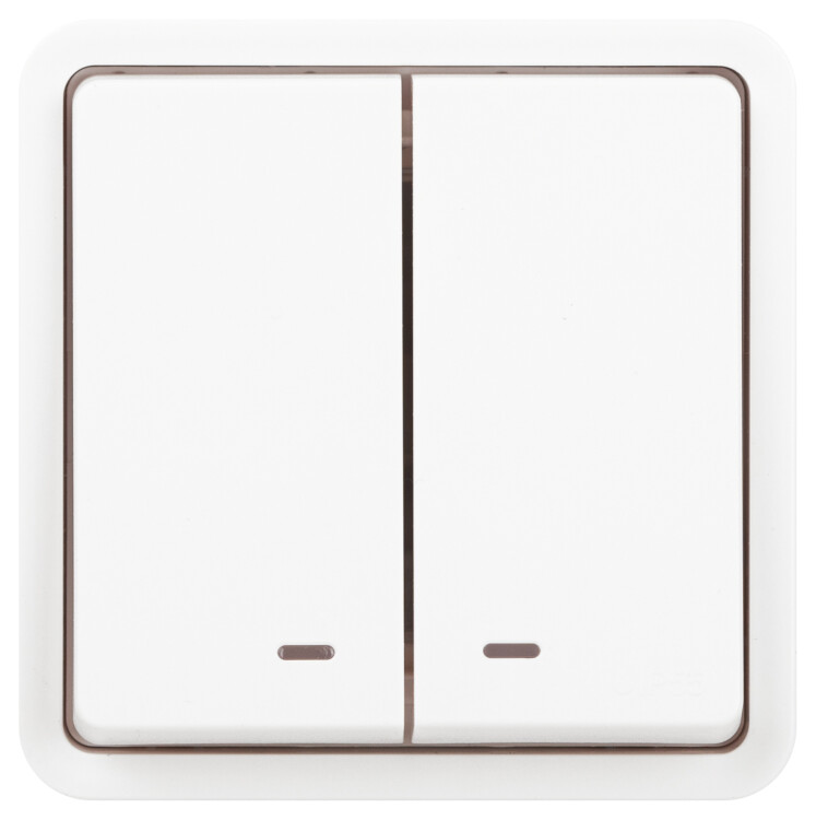Выключатель влагозащищённый 2-клавишный с подсветкой серии Эра Эксперт накладн IP55 цвет белый 11-1525-01 открытой установки. Номинальные характеристики 10А 250В . Выполнен из качественного поликарбоната, оснащён уникальными винтовыми клеммами ЭКСПЕРТ для максимально качественного зажима кабеля в механизме.