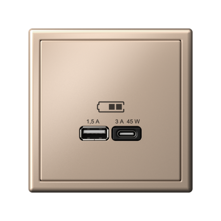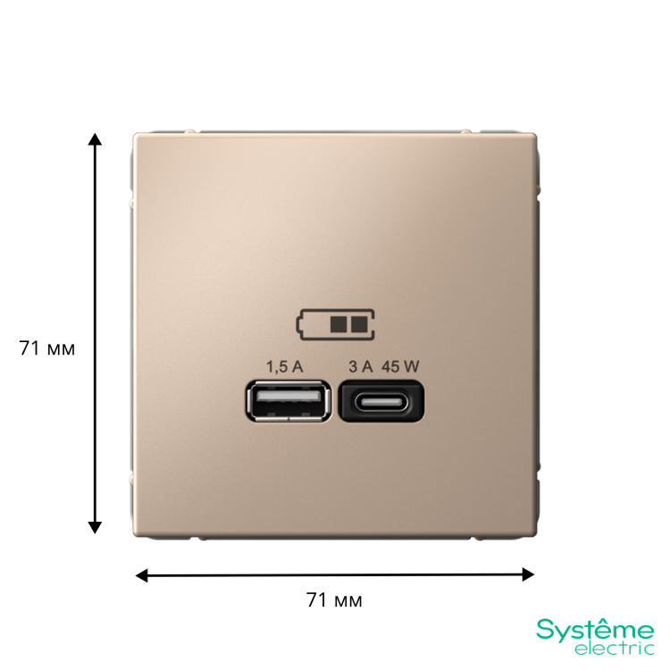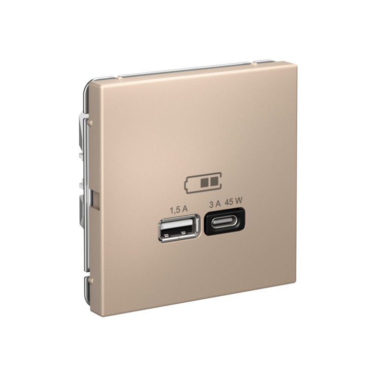 Розетка Systeme Electric серии ArtGallery в цвете песочный двойная USB с разъемами типа A+C высокоскоростная.