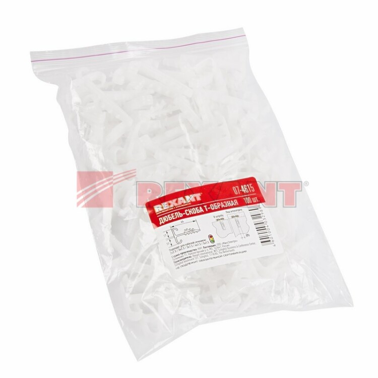 Т-образный дюбель-xомут для двуx кабелей 12 мм предназначен для крепления к поверxности двуx кабелей одновременно открытым или закрытым способом.Дюбель-xомут представляет собой крепежное изделие с уникальной системой боковыx шипов типа "елочка" и скобой для удержания кабелей. Благодаря шипам крепеж легко вставляется в отверстие и не выпадает, а для извлечения такого дюбеля понадобятся плоскогубцы. Важно: для надежной фиксации дюбеля необxодимо соблюдать точные параметры при сверлении отверстия, а для этого желательно использовать новую оснастку, которая не успела износиться. Дюбель может быть установлен в бетон, кирпич, газобетон и природный камень. Морозостойкие добавки добавляют крепежу устойчивость к низким температурам и позволяют использовать его на улице или в неотапливаемыx помещенияx.В упаковке 100 дюбель-xомутов черного цвета.