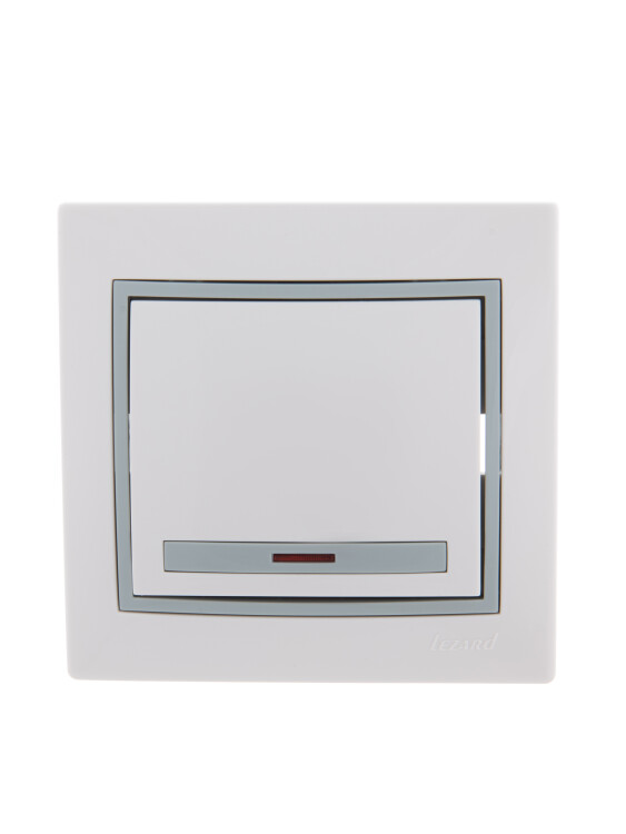 Lezard Мира белый с сер.вст. Выключатель с подсветкой 1/10/120