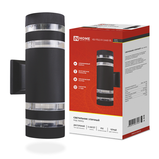 IN HOME Светильник улич. двустор. НБУ POLO-R-2хA60-BL алюм. под лампу 2хA60 E27 230B черн CITY IP65