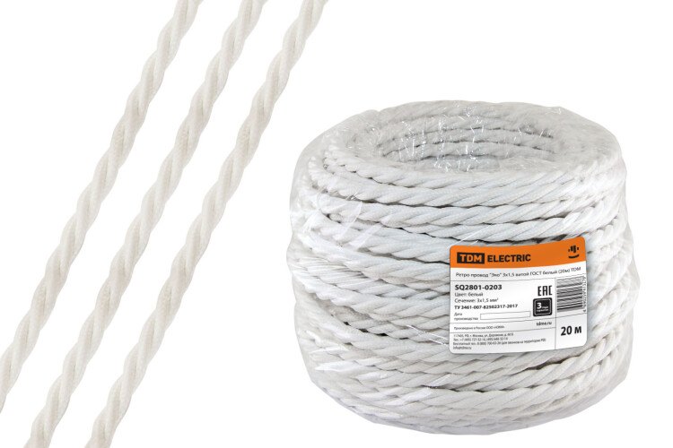 Ретро провод "Эко" 3х1,5 витой ГОСТ белый (20м) TDM