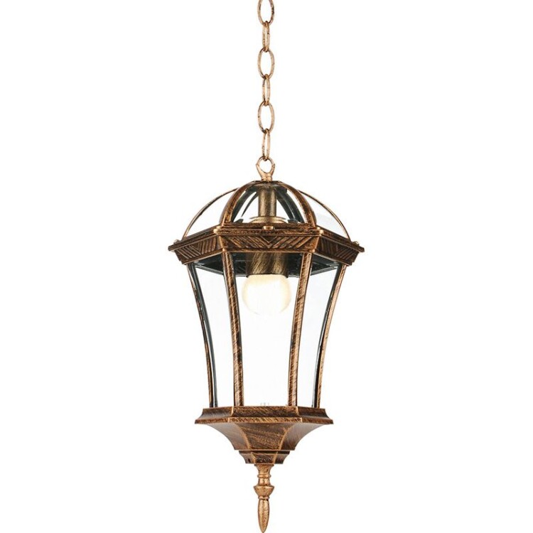 Светильник садово-парковый, серии «Неаполь», (НСУ) FERON PL625 60W, E27, 230V, IP44, цвет черное золото, 6-и гранник, на цепочке, 205*180*870мм
