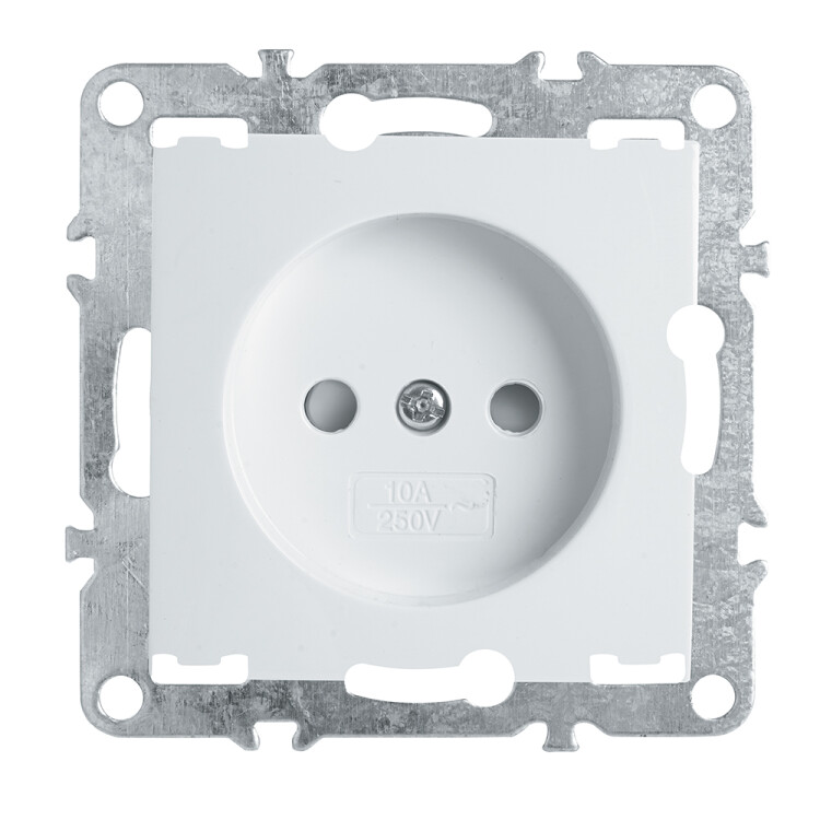 Розетка STEKKER PST10-9109-01 на 1 гнездо, без заземления. Материал: PP пластик/ABS пластик, латунь, цвет белый, размер 55*55*35мм. Номинальное напряжение 250, номинальный ток 10А, диапазон рабочих температур 0..+35°C, IP20