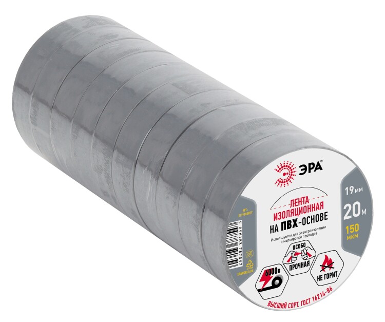 ЭРА Изолента ET1920GREY ПВХ 19мм х 20м серая