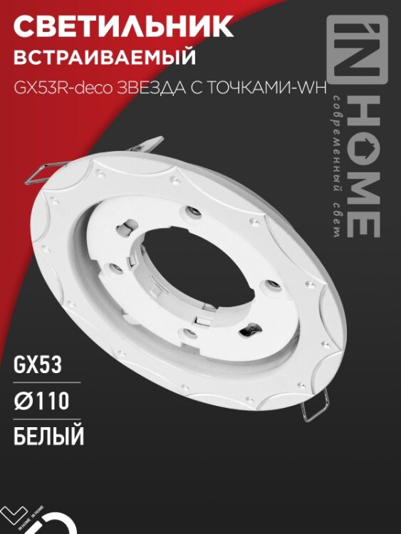 IN HOME Светильник встраиваемый GX53R-deco ЗВЕЗДА С ТОЧКАМИ-WH под лампу GX53 бел ый 1/100