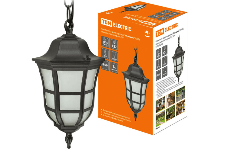 TDM Светильник садово-парковый "Меридиан" 100 Вт, подвес, матовое/черный, Е27