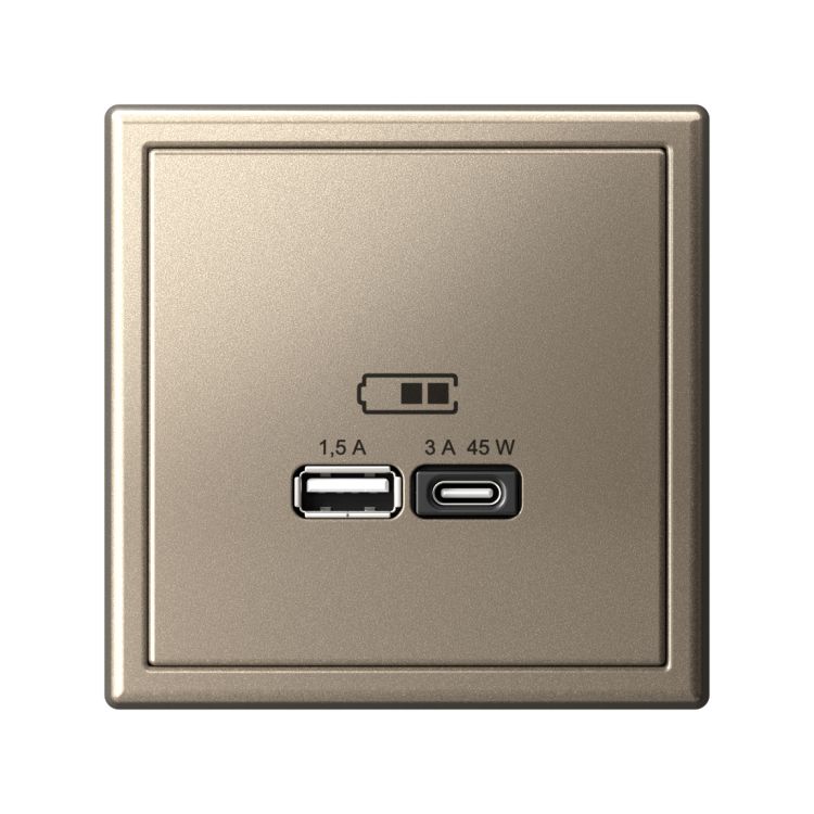 Розетка Systeme Electric серии ArtGallery в цвете шампань двойная USB с разъемами типа A+C высокоскоростная.