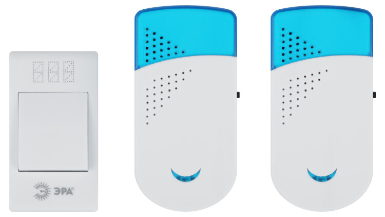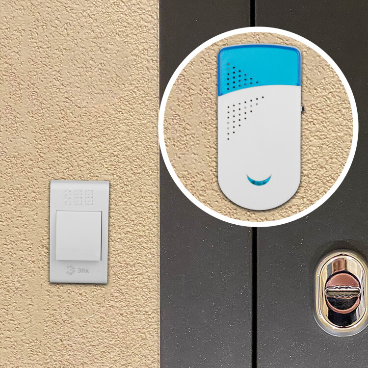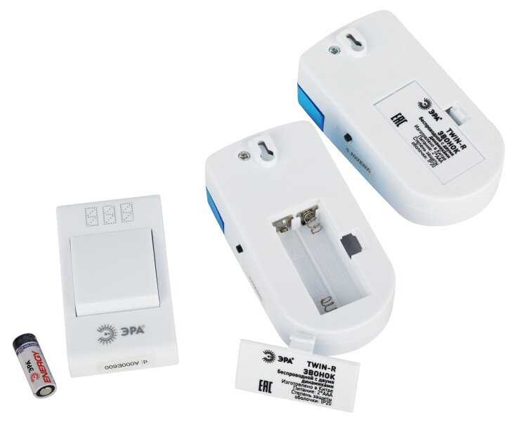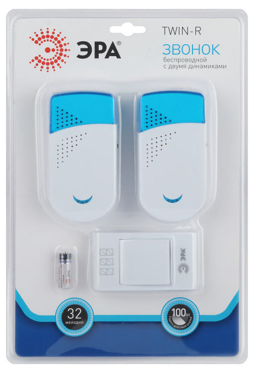 ЭРА Звонок дверной TWIN-R беспроводной два динамика белый с голубым 32 мелодии