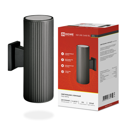 IN HOME Светильник улич. двустор. НБУ LINE-2хA60-BL алюм. под лампу 2хA60 E27 черный IP65