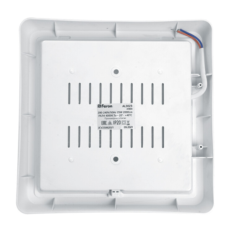 Светильник накладной светодиодный, квадрат (ДПБ) FERON AL3021, 25W, 4000К (белый), 200-240V, 2000Lm, IP20, угол рассеивания 120°, цвет белый, корпус пластик, рассеиватель пластик, 190*190*35