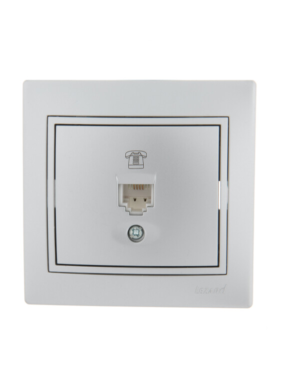 Lezard Мира металлик серый с вст Розетка телефонная евро 1/10/120