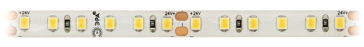 ЭРА Лента светодиодная LS2835-14,4-120-24-65-2700К-5m (50/1000) со степенью защиты от пыли и влаги IP65 - современный способ создания внутреннего освещения, подсветки ниш, лестничного пространства, систем хранения, а также декоративного и художественного оформления любых объектов и форм в помещениях с повышенным уровнем влажности и уличного освещения. Легко и быстро устанавливается на любой гладкой поверхности с помощью скотча, расположенного на оборотной стороне ленты Используя алюминиевый профиль, можно создавать необычные и функциональные решения освещения в Вашем интерьере. Рабочее напряжение ленты составляет 24В, а мощность равна 14,4 Вт/м. Светодиодная лента обладает световым потоком 800 Лм/м, и цветом свечения - теплый белый (2700 K)