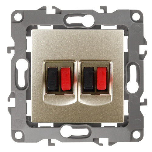 Розетка двойная аудио стерео серии Эра 12 скрытой установки механизм цвет шампань 12-3112-04. Сделана из поликарбоната. Монтаж в подрозетник производится и на лапки, и на винты. Рамки приобретаются отдельно. Рамки Эра 12: 1 пост 12-5001-хх, 2 поста 12-5002-хх, 3 поста 12-5003-хх, 4 поста 12-5004-хх, 5 постов 12-5005-хх. Рамки Эра 12 Сатин: 1 пост 12-5101-хх, 2 поста 12-5102-хх, 3 поста 12-5103-хх, 4 поста 12-5104-хх, 5 постов - 12-5105-хх (хх - код цвета: 01-белый, 02-слоновая кость, 03-алюминий, 04-шампань, 05-антрацит, 06-чёрный, 07-ольха(белёный дуб-сатин), 08-вишня, 09-дуб, 10-венге, 11-сосна, 21-жёлтый, 22-оранжевый, 23-красный, 24-охра, 25-бордо, 26-лайм, 27-зелёный, 28-голубой, 29-синий).