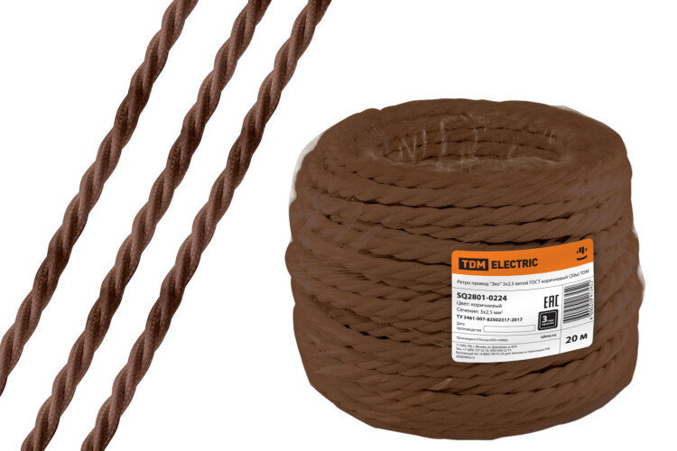 Ретро провод "Эко" 3х2,5 витой ГОСТ коричневый (20м) TDM