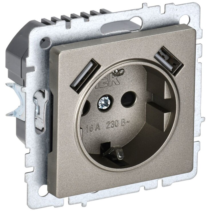 IEK BRITE BASE Шампань Розетка с з/к/ш 16А с USB A+A 3,1А РЮш10-2-БрШ