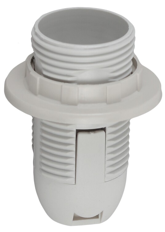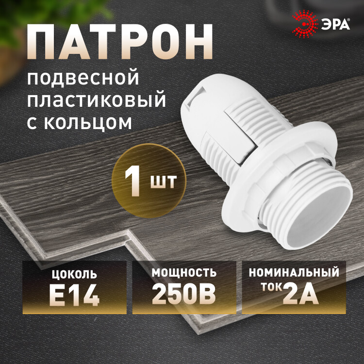 патрон с кольцом изготавливается из термостойкого пластика, материал химически устойчивый к агрессивным сред ам, обладает высокой прочностью и теплостойкостью; не обладает способностью выдерживать высокие температуры нагрева, поэтому его чаще всего используют для ламп накаливания мощностью не более 60 Вт