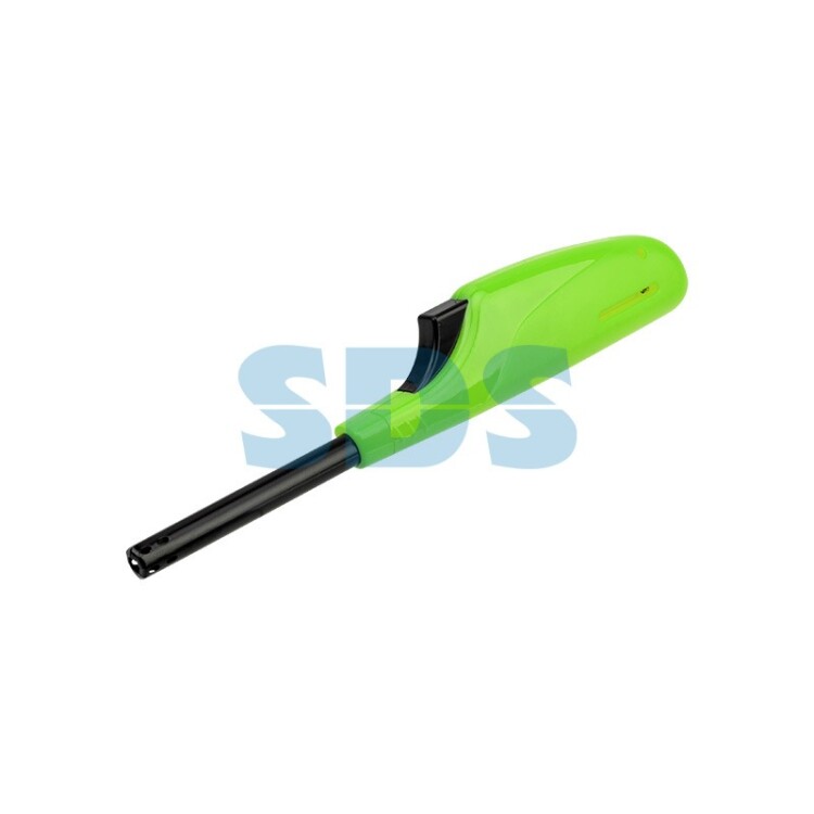 Бытовая пьезозажигалка с классическим пламенем, c держателем. Общие габариты зажигалки: 205х38х25 мм Тип поджига: пьезоэлектрический Цвет: зеленый
