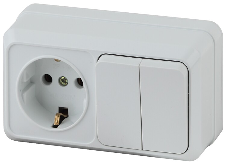 Intro Блок розетка с выключателем Quadro 2-702-01 двойным горизонтальный 10(16)А-250В, IP20, ОУ, белый