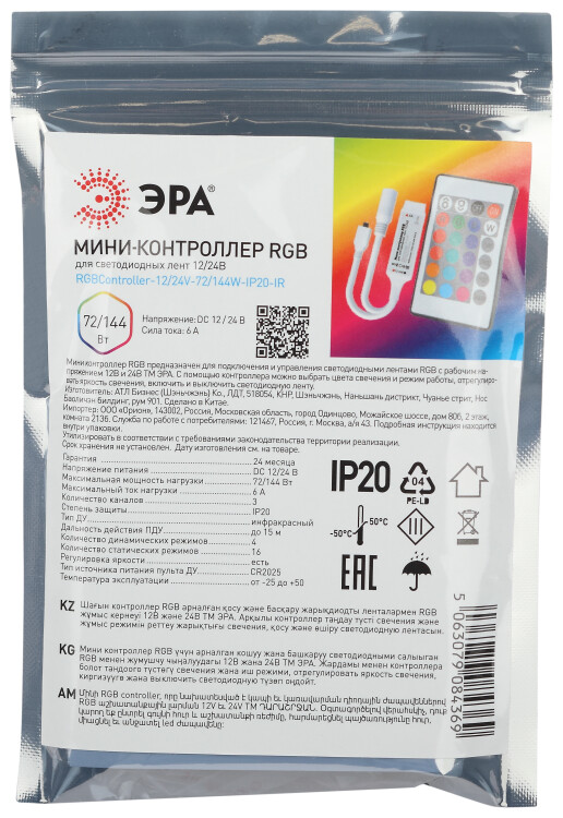 Контролер мини 72/144Вт для светодиодной ленты RGB необходим для регулирования цвета свечения ленты, ее яркости, настройки различных режимов работы. Контролер комплектуется кнопочным ИК пультом для дистанционного управления.