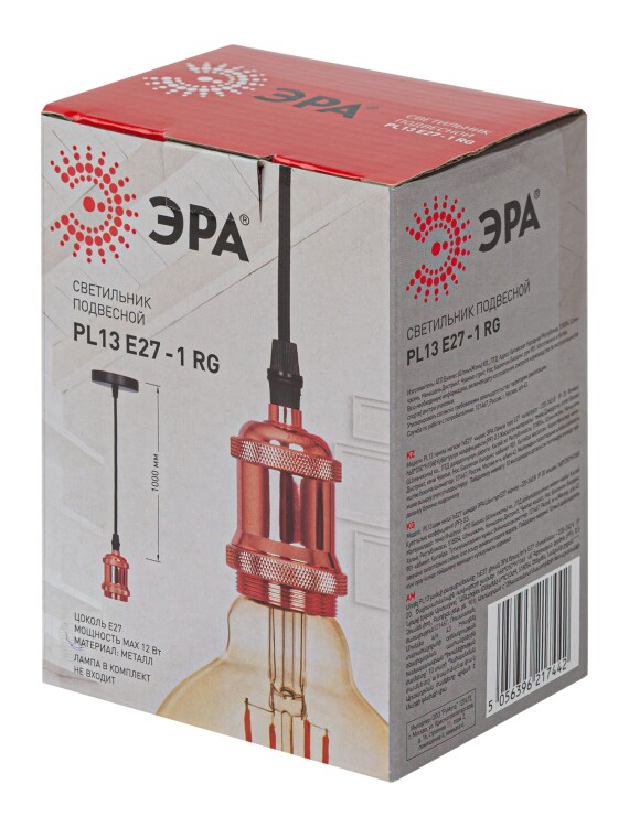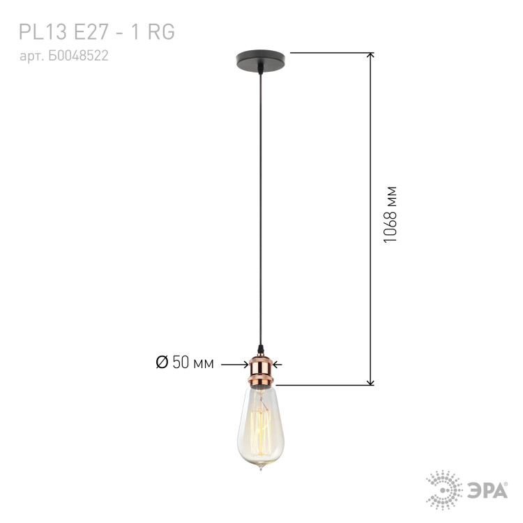 ЭРА PL13 E27 - 1 RG Подсветка Накладной, цоколь Е27, провод 1 м, цвет розовое золото (60/360)