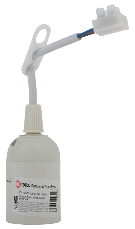 ЭРА Патрон Е27 с клеммной колодкой пластиковый белый