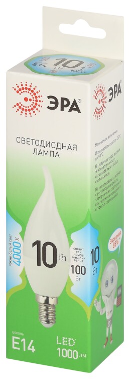 Светодиодная лампа ЭРА LED BXS-10W-840-E14 GL серии Green Line — это яркий и экономичный источник света, заменяющий лампы накаливания. Лампочка с цоколем Е14 и мощностью 10 Вт излучает нейтральный белый свет (4000K) без мерцания. Элегантная форма BXS (свеча на ветру) и стандартный цоколь E14 позволяют использвать лампу в люстрах, бра, настольных и декоративных светильниках. Высота лампы: 125 мм. Работает от сети 220 В, эквивалентна 100 Вт лампе накаливания. Светодиодные лампы ЭРА потребляют минимум энергии и не нагреваются. Подходят для дома, гостиниц, ресторанов и коммерческих помещений, сочетая стиль и функциональность.