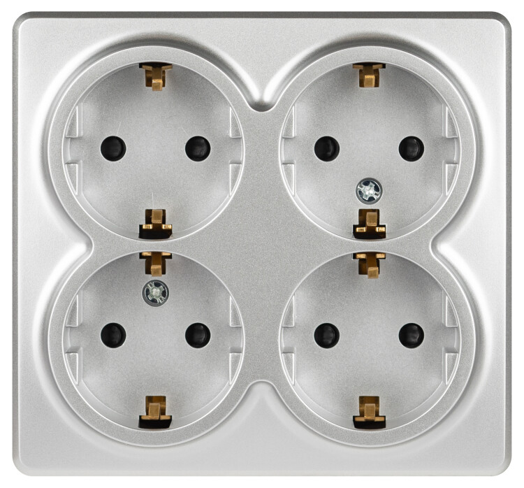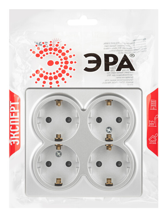 Розетка четырехместная с заземлением, со шторками серии Эра Эксперт открытой установки цвет алюминий 11-2211-03. Номинальные характеристики 16А 250В. Устройство выполнено из качественного поликарбоната, оснащёно уникальными винтовыми клеммами ЭКСПЕРТ для максимально качественного зажима кабеля в механизме.