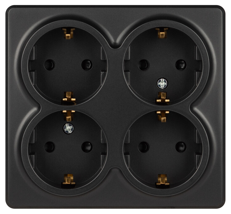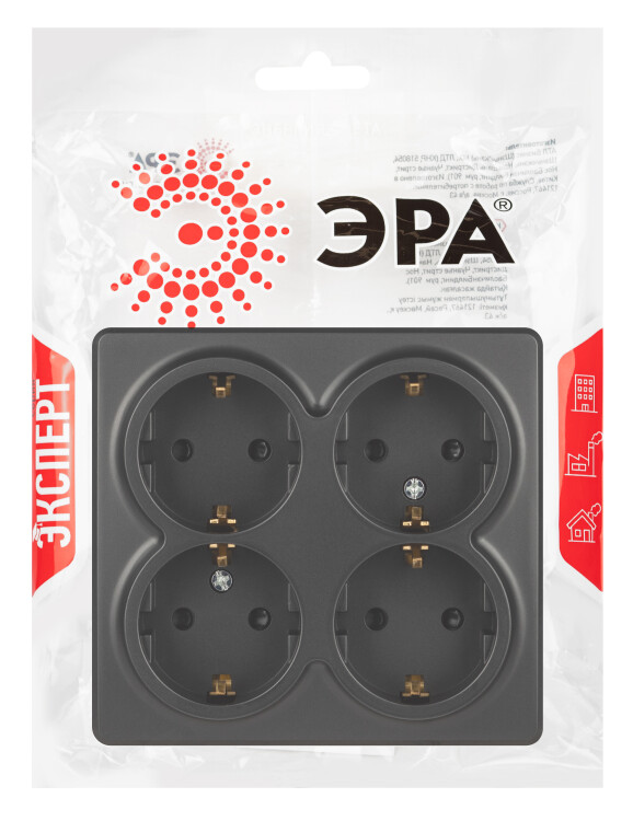 Розетка четырехместная с заземлением, со шторками серии Эра Эксперт открытой установки цвет антрацит 11-2211-05. Номинальные характеристики 16А 250В. Устройство выполнено из качественного поликарбоната, оснащёно уникальными винтовыми клеммами ЭКСПЕРТ для максимально качественного зажима кабеля в механизме.