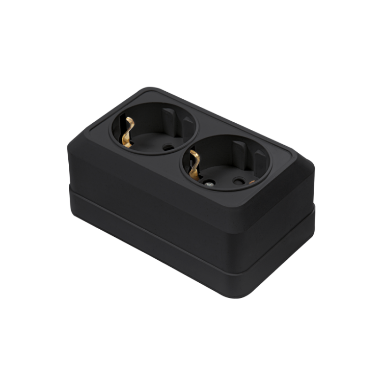 IN HOME Розетка двойная с заземлением BOLLETO черная накладная 7128B 10/200